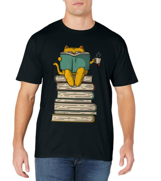 Reading Cat - Funny Book & Tea Lover Gift Short Sleeve T-Shirt