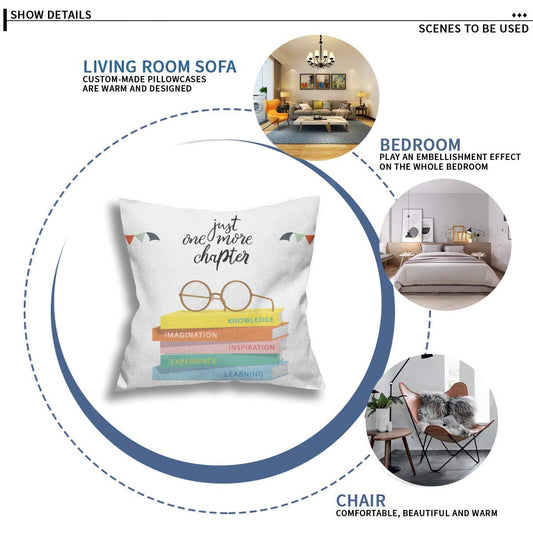Just One More Chapter Throw Pillow Case Cushion Cover Book Lovers Linen 18 x 18 Inch