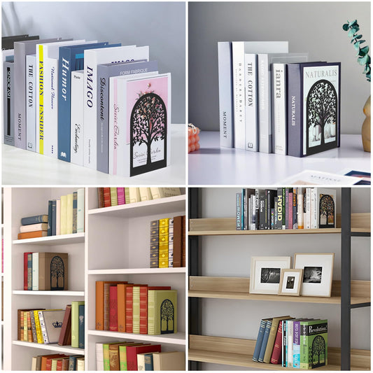 Sujetalibros, sujetalibros, extremos de libros de árbol para estantes, extremos de libros modernos decorativos, sujetalibros de metal para libros pesados, sujetalibros resistente para oficina en casa, 7,1 x 4,7 x 3,5 pulgadas (2 pares/4 piezas, grande)